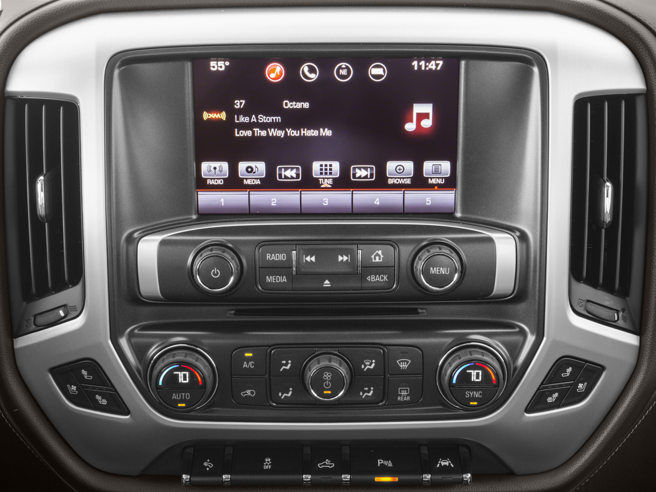 SLT Premium Package: 20" X 9" Polished Aluminum Wheels; Bose Speaker System; 6" Rectangular Chromed Tubular Assist Steps. Preferred Equipment Group 4SA: LED Cargo Box Lighting; EZ Lift and Lower Tailgate; Chrome Door Handles; Rear Vision Camera; Rear 60/40 Folding Bench Seat (folds Up); Leather Appointed Seat Trim; Remote Vehicle Starter System; 5.3L EcoTec3 V8 Engine; 18" X 8.5" Polished Aluminum Wheels; 3.08 Rear Axle Ratio; Electric Rear Window Defogger; Theft Deterrent System (unauthorized Entry); Auxiliary External Transmission Oil Cooler; AM/FM Stereo with 8" Diagonal Color Touch Screen; 4.2" Diagonal Color Display Driver Info Center; Trailering Equipment; 110-Volt AC Power Outlet; Thin Profile LED Fog Lamps; 150 Amp Alternator; Steering Wheel Audio Controls; Universal Home Remote; Color-Keyed Carpeting; Power Windows with Driver Express Up and Down; OnStar 3 Month Guidance Plan; Remote Keyless Entry; P265/70R17 AS BW Spare Tire; Single Slot CD/MP3 Player; 2-Speed Active Electronic Autotrac Transfer Case; 1st and 2nd Row Color-Keyed Carpeted Floor Mats; Deep-Tinted Glass; Dual-Zone Automatic Climate Control; Power Folding and Adjustable Heat