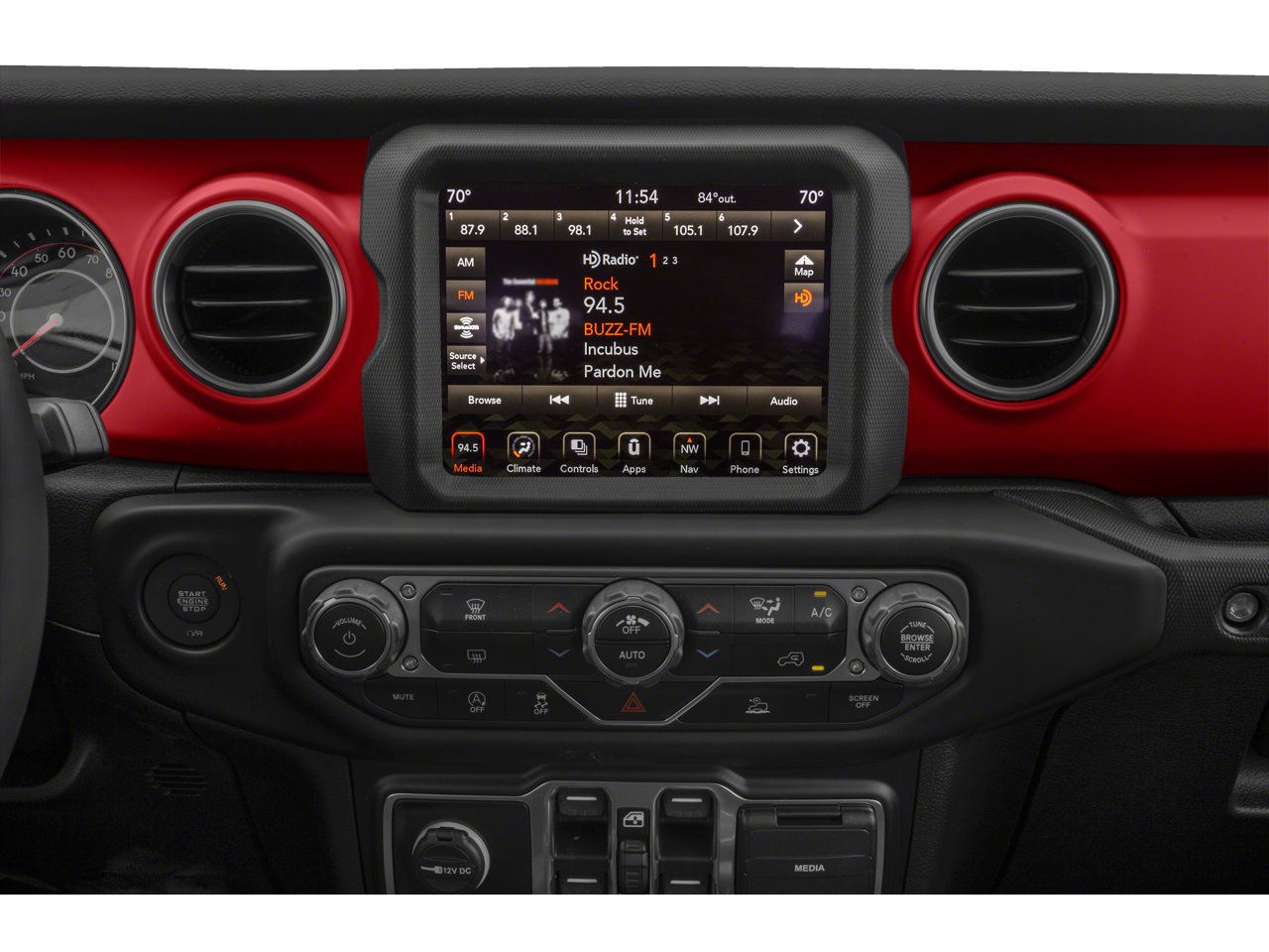 Cold Weather Group: Remote Start System; Heated Front Seats; Heated Steering Wheel; Heated Front Seats; Heated Steering Wheel. LED Lighting Group: Daytime Running Lamps LED Accents; Front LED Fog Lamps; LED Reflector Headlamps; LED Taillamps; LED Park Turn Lamps. Quick Order Package 24R. Trailer Tow Package: Heavy Duty Engine Cooling; Trailer Hitch Zoom; Class IV Hitch Receiver; 240 Amp Alternator. 8.4" Radio and Premium Audio Group: Emergency/assistance Call; SiriusXM Traffic Plus; Alpine Premium Audio System; HD Radio; Uconnect 4C Navigation Radio with 8.4" Display; Rear View Auto Dim Mirror; For Details. Visit DriveUconnect.com; 1-Year SiriusXM Guardian Trial; 5-Year SiriusXM Travel Link Service; 5-Year SiriusXM Traffic Service; SiriusXM Travel Link. Dual Top Group: Premium Sunrider Black Soft Top; Black 3-Piece Hard Top. Leather Trimmed Bucket Seats. Alpine Premium Audio System. Black 3-Piece Hard Top. Steel Front Bumper. Remote Proximity Keyless Entry. Remote Start System. Bluetooth® Wireless Speaker. Granite Crystal Met CC. All-Weather Slush Mats. **Equipment listed is based on original vehicle build and subject to change. Please confirm the accuracy of the included equipment by calling the dealer prior to purchase.**